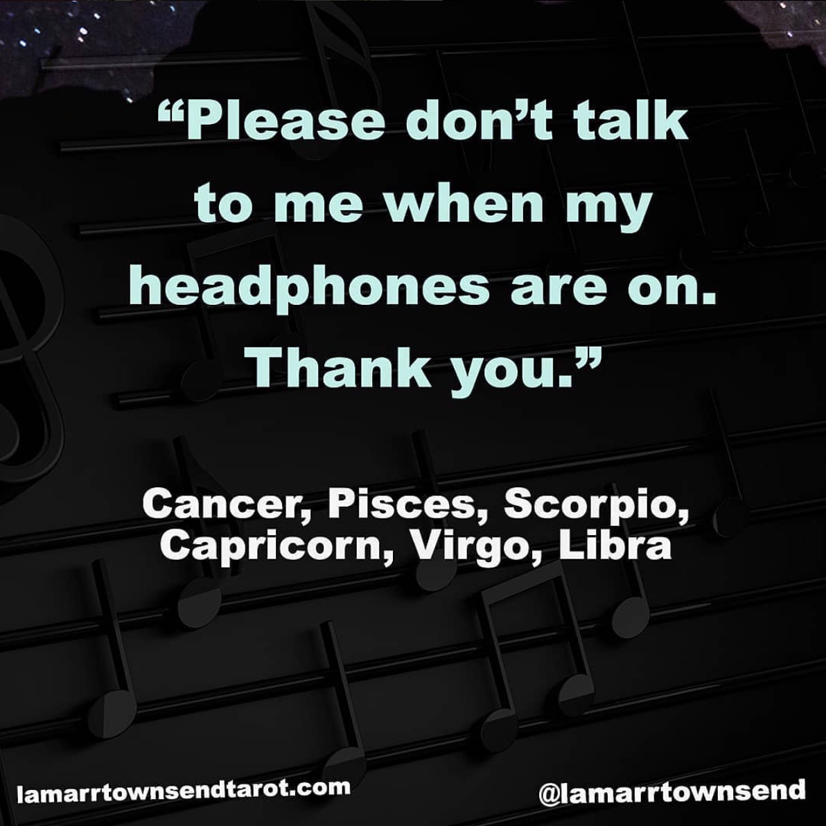 This “don’t talk to me when my headphones are on” zodiac sign meme incorporates the zodiac signs Cancer, Pisces, Scorpio, Capricorn, Virgo, and Libra. Categories: zodiac sign memes, astrology memes, Cancer memes, Pisces memes, Scorpio memes, Capricorn memes, Virgo memes, Libra memes.